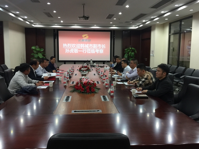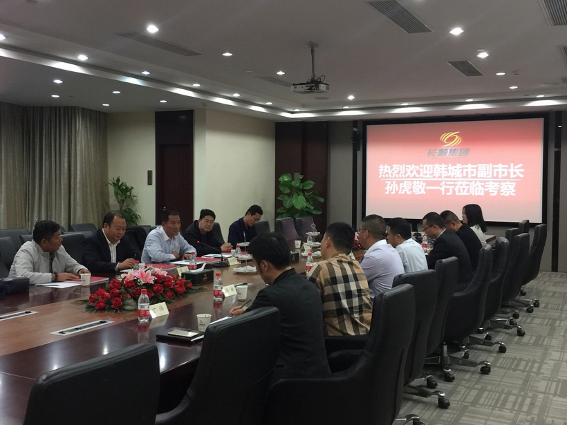 在集团公司苏州总部大会议室,双方举行了洽谈,出席会议的领导有:韩城市政府副市长孙虎敬、韩城市政府副秘书长胡新胜、韩城市黄河新区管委会党工委书记管委会主任李江、韩城市黄河新区管委会规划部部长范立、陕西大河国风文化产业发现有限公司董事长范胜军。首先beat65官网孙董致欢迎词并邀请来宾观看了beat65官网的宣传片。随后长顺建设总经理王叶军、金融公司总经理许献就公司相关事项做了介绍。接着孙虎敬副市长就韩城目前的发展状况和未来规划做了详细介绍。最后双方就相关问题接治、讨论,会议在友好热烈的气氛中圆满结束。