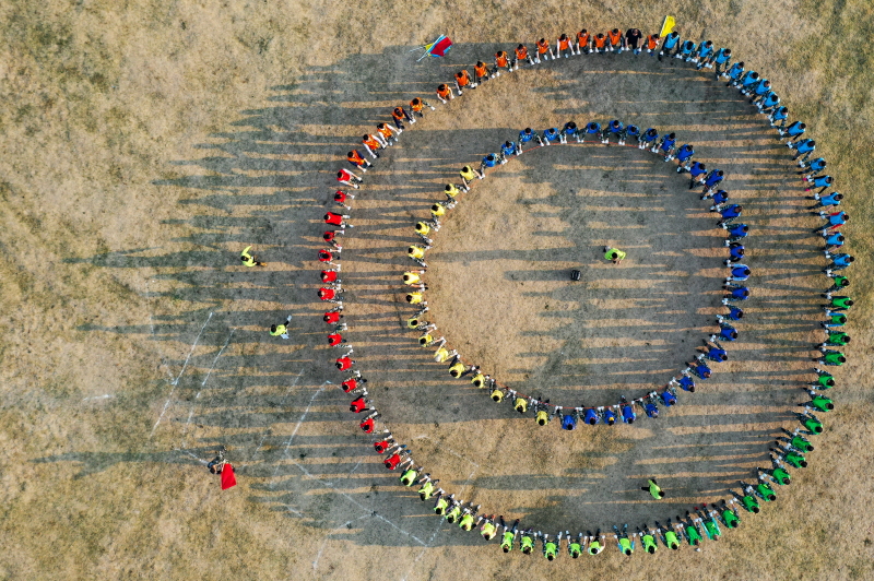 绳圈需动力,全体共努力。舞动同心圆,燃烧卡路里。