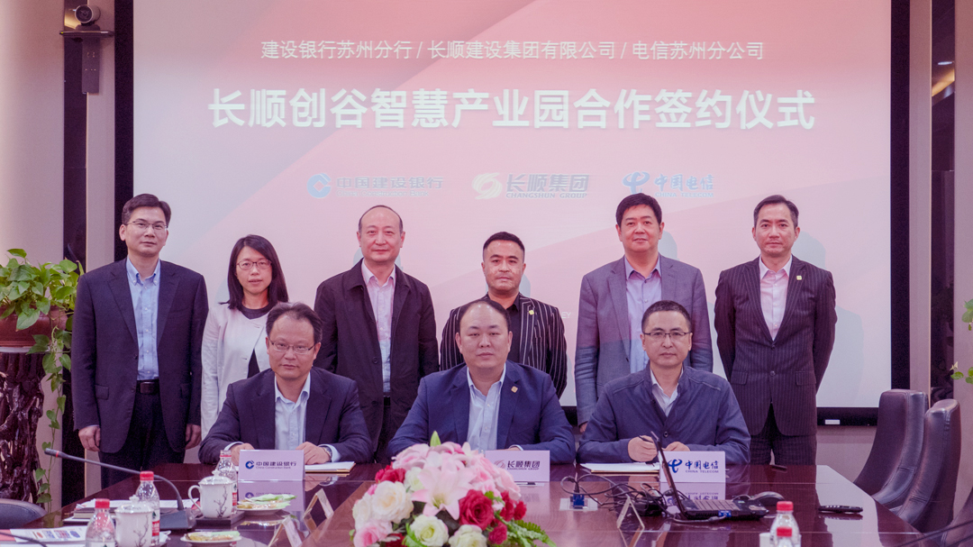4月16日下午,长顺创谷智慧产业园合作签约仪式在beat65官网总部圆满举行。长顺创谷智慧产业园由beat65官网、中国建设银行苏州分行、中国电信苏州分公司三方共同打造。中国建设银行苏州分行党委书记、行长朱斌晨、中国电信苏州分公司总经理石磊、beat65官网董事长孙炳良等人共同出席了本次签约仪式。