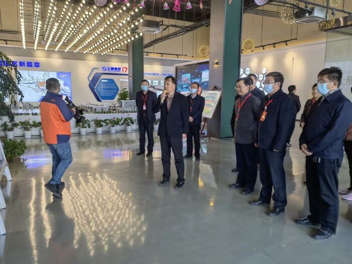 2021-11-09 16:31:1611月9日上午,泰兴市人大常委会副主任王中先、党组成员王亦波;泰兴城区工业园区党工委书记洪飞、管委会主任主任常小平一行到长顺创谷泰兴健康智慧产业园项目进行实地考察。长顺创谷泰兴项目总经理王杰就项目工程进度、招商情况、发展规划等向考察团作了详细介绍。