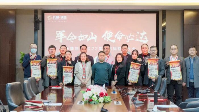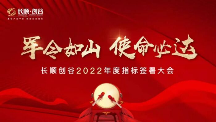 因势而变,乘势而上。为在全新市场格局下扎实、稳健布局2022,全面部署发展新策略、坚定贯彻管理新理念,为抢跑2022谋势蓄力。1月8日,以“军令如山·使命必达”为主题,长顺创谷2022年责任指标签署大会隆重召开,吹响新一年的燃战号角。