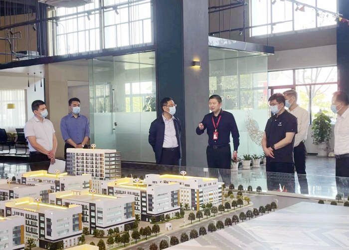 2022-05-06 14:51:095月5日上午,泰兴市政协主席徐闻仲、泰兴城区工业园党工委书记洪飞、泰兴城区工业园管委会主任常小平一行莅临长顺创谷(泰兴)健康智慧产业园项目进行实地考察调研。长顺创谷(泰兴)健康智慧产业园项目总经理王杰接待并详细介绍了项目情况。