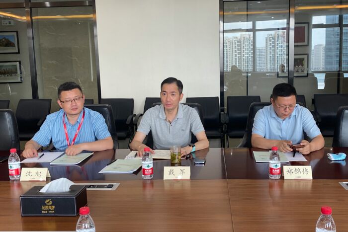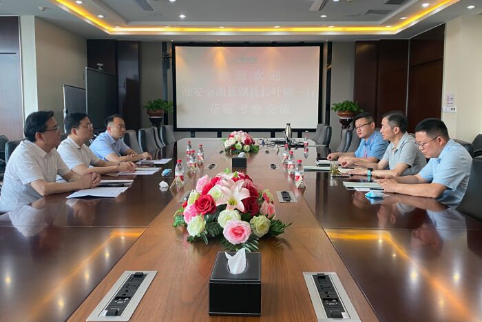 2022-06-24 11:01:316月23日下午,淮安金湖县副县长叶楠、水利局局长孙桂清一行莅临beat65官网总部考察交流。beat65官网地产总裁戴军及相关负责人接待了考察团一行。