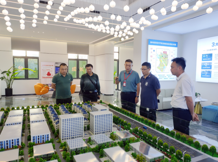 解生勇会长一行在听取介绍后,高度赞扬了园区的建设速度和招商成果。通过详细了解园区厂房具体数据,他表示长顺·复创(滁州)国际产业园择址滁州国家级经开区,具有显著的区位优势,项目周边康佳、博世、东方日升、慧科等大型企业林立,产业集群效应显著。