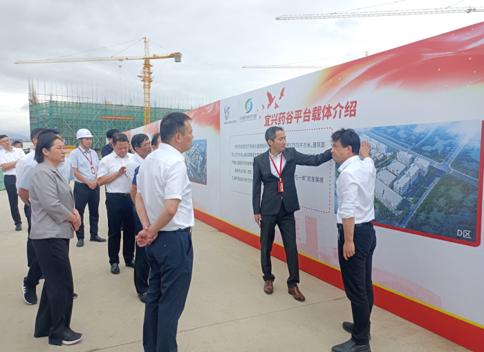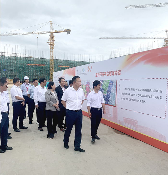 环科园党工委书记储红飙向封书记一行介绍了长顺创谷(宜兴)智能产业园二期的概况。长顺创谷(宜兴)智能产业园二期又名宜兴国际生命科学产业园项目(宜兴药谷)D区,总占地57957㎡,建筑面积约15万㎡,由长顺创谷控股集团负责载体建设,规划为制剂、制药等生物医药企业生产基地,基地拟以科研、试剂、试制、生产、体验、产业孵化、规模生产“六位一体”的发展模式,最终建设成为现代生物制药新型智能化生产的产业高地。