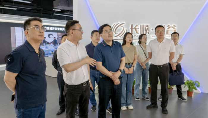 在企业展厅,战略投资部鲁总向考察团介绍了长顺大数据招商系统及智慧化园区管理平台。当前长顺创谷正在全面向服务和科技转型,与国内知名数智平台战略合作,全面构建数字化服务体系,重塑产业组织和园区运营的核心能力,致力于打造具有全国影响力的产业服务商。随后,陈书记一行还考察了长顺创谷宜兴项目,全面了解了园区建设情况、招商情况、运营服务情况以及入园企业情况等。